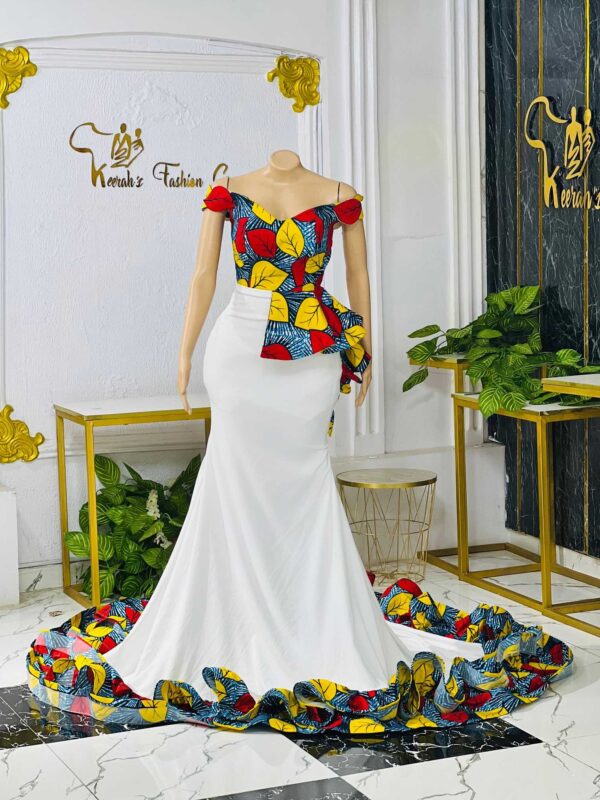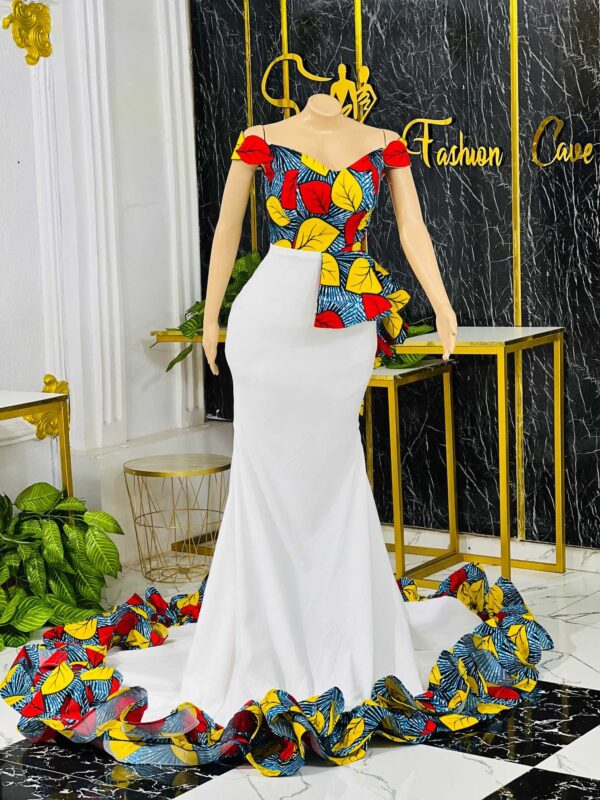 The bold, colorful print is inspired by traditional African designs, and the flowing, floor-sweeping silhouette is both elegant and comfortable. Whether you’re attending a special occasion or just want to add some flair to your everyday wardrobe, this dress is sure to turn heads.