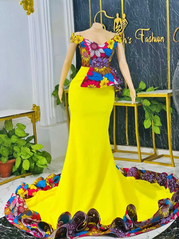 Embody the beauty and richness of African culture with this stunning African print dress. Made from vibrant, high-quality fabric, this dress is a true showstopper.