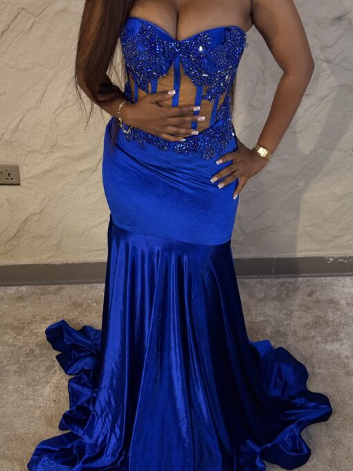Experience the epitome of glamour and sophistication in this customizable prom dress. Contact us to discuss your color, fabric, and measurement preferences