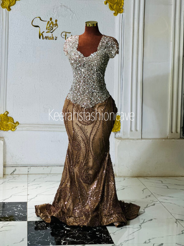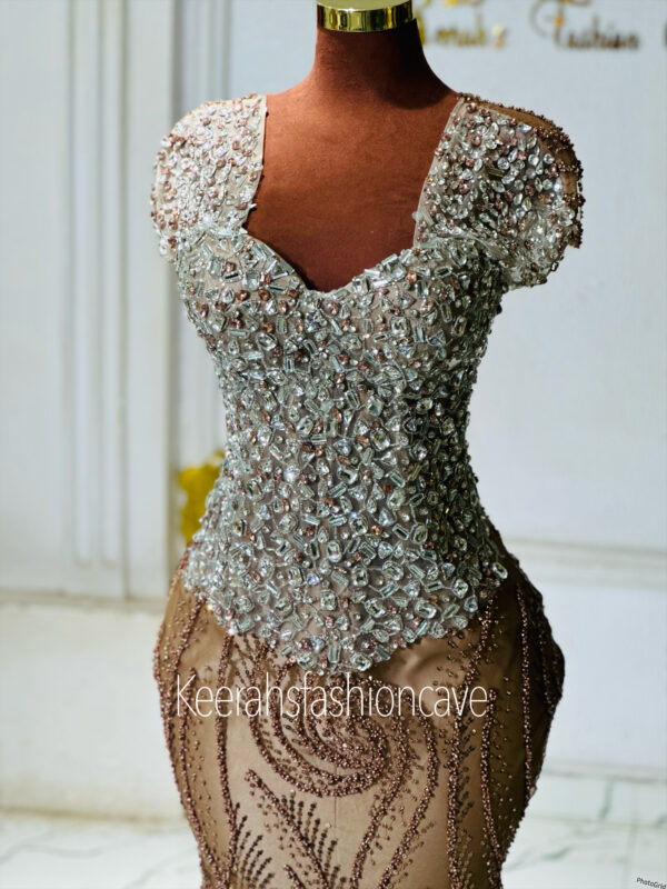 Beautiful dress! It looks as it does in the photo i was very impressed with how well it is made for the price.