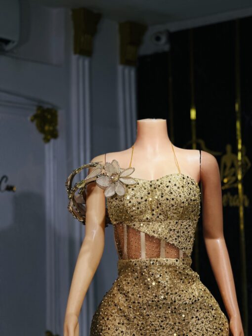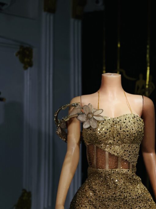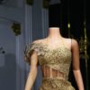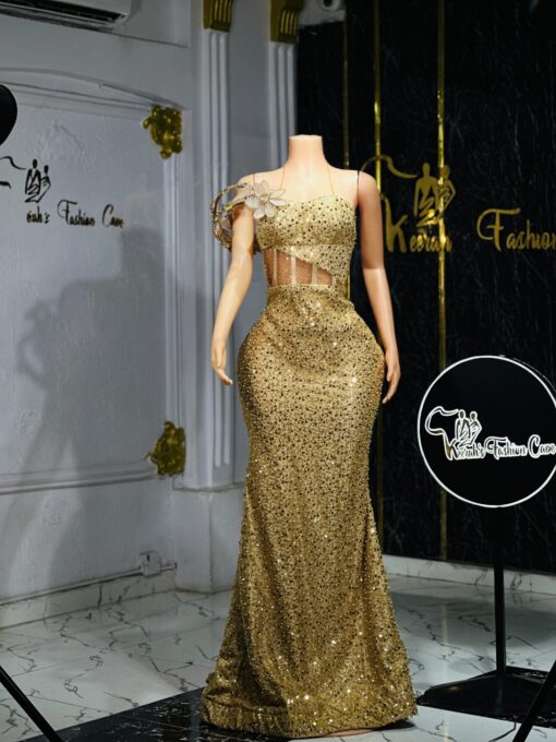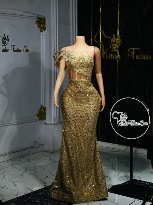 Experience the epitome of glamour and sophistication in this customizable prom dress. Contact us to discuss your color, fabric, and measurement preferences