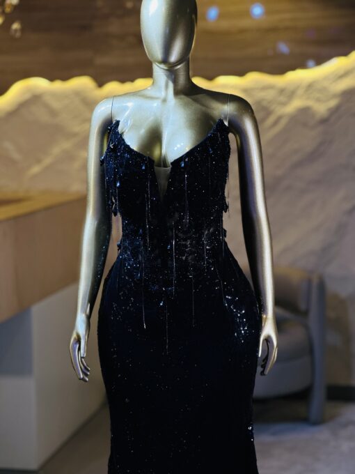 Experience the epitome of glamour and sophistication in this customizable prom dress. Contact us to discuss your color, fabric, and measurement preferences