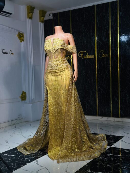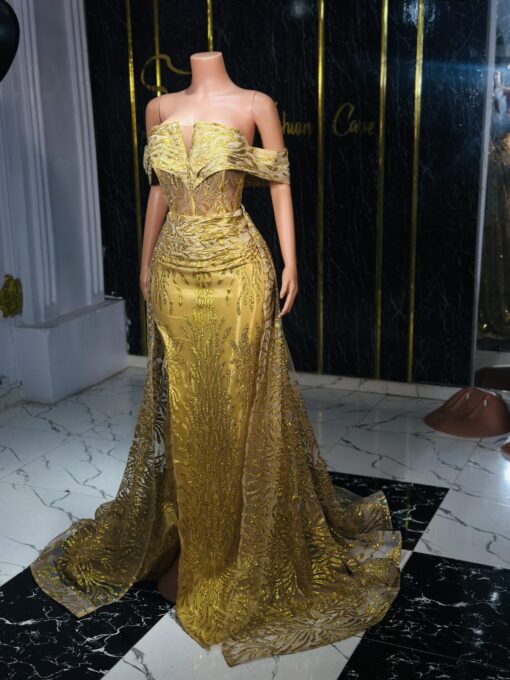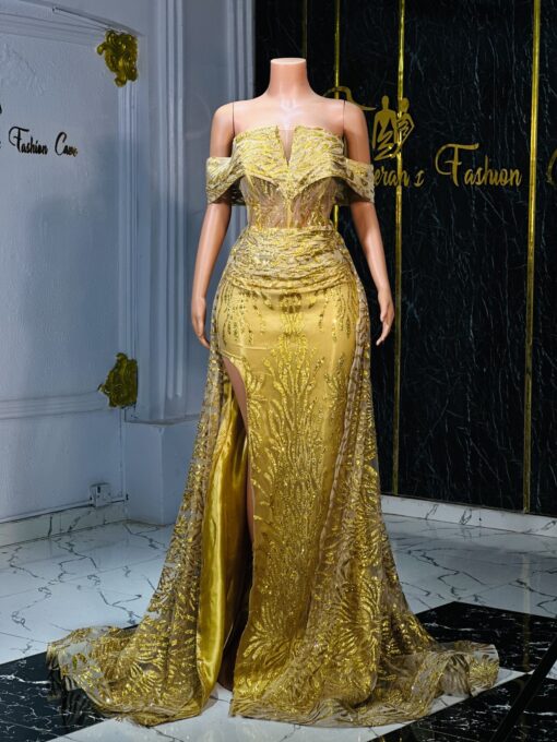 Experience the epitome of glamour and sophistication in this customizable prom dress. Contact us to discuss your color, fabric, and measurement preferences
