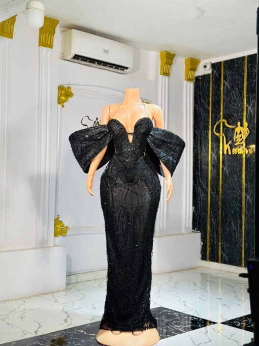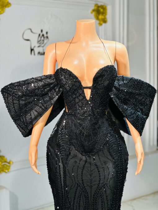 Ethereal Elegance: A black beauty dress with hand cape. Make an unforgettable entrance in this breathtaking prom dress, customizable to your perfect fit .