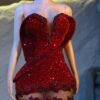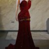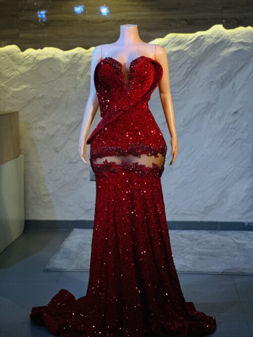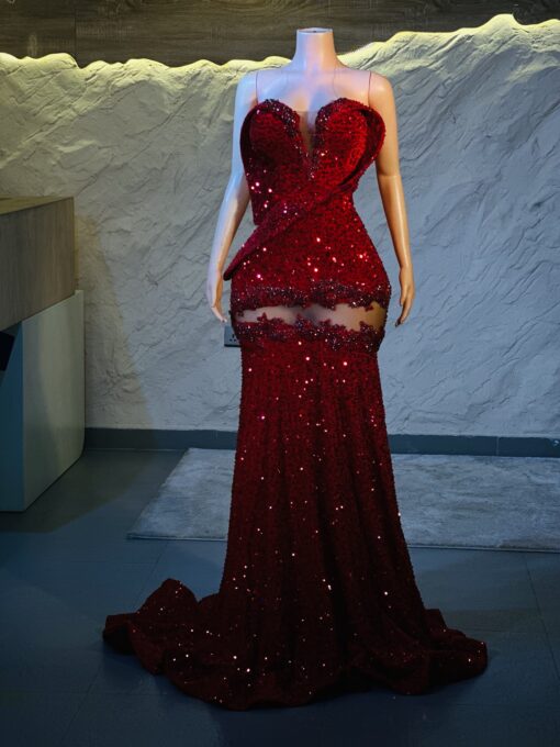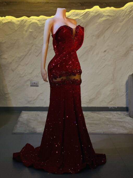 Ethereal Elegance: A luxurious red Dress with structured sleeves. Make an unforgettable entrance in this breathtaking prom dress, customizable to your perfect fit .