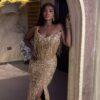 Experience the epitome of glamour and sophistication in this customizable prom dress. Contact us to discuss your color, fabric, and measurement preferences