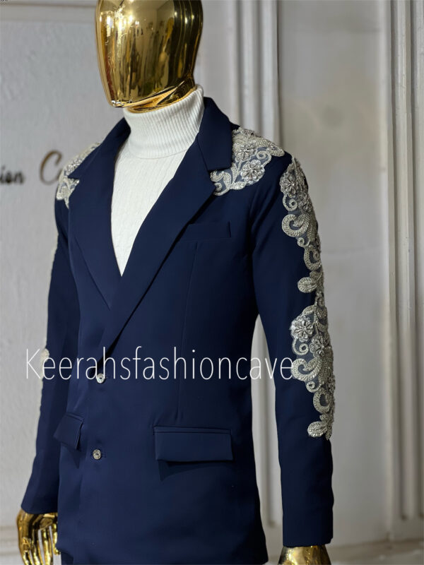 – Peak lapels and side pockets