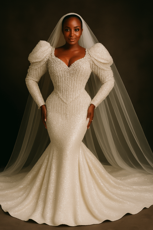 Ethereal Elegance: A luxury off-white floor length bridal dress. Make an unforgettable entrance in this breathtaking prom dress, customizable to your perfect fit .