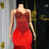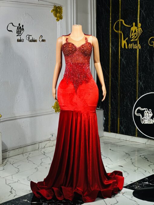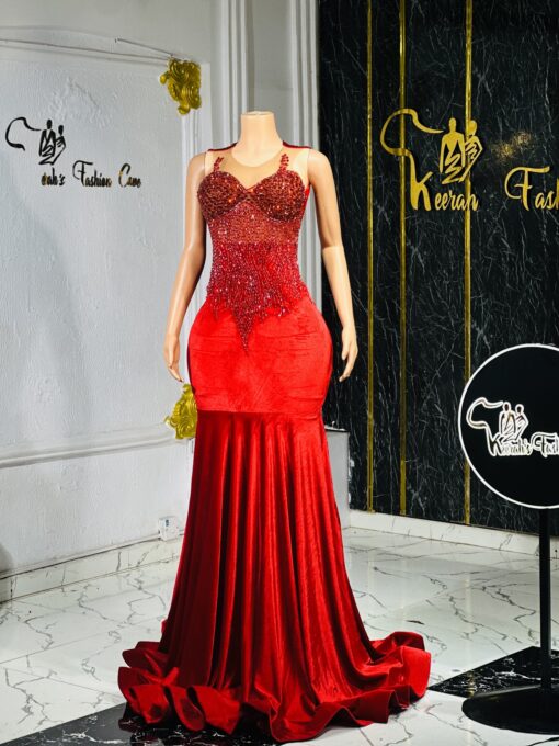 Ethereal Elegance: A luxurious floor length red velvet dress. Make an unforgettable entrance in this breathtaking prom dress, customizable to your perfect fit .