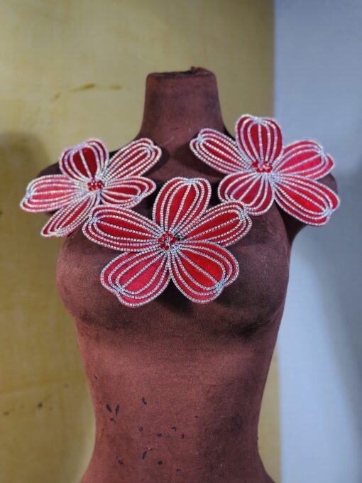 A well detailed 3D Applique with a silver contouring perfect for decorating evening gowns, bridal couture or statement Fashion pieces