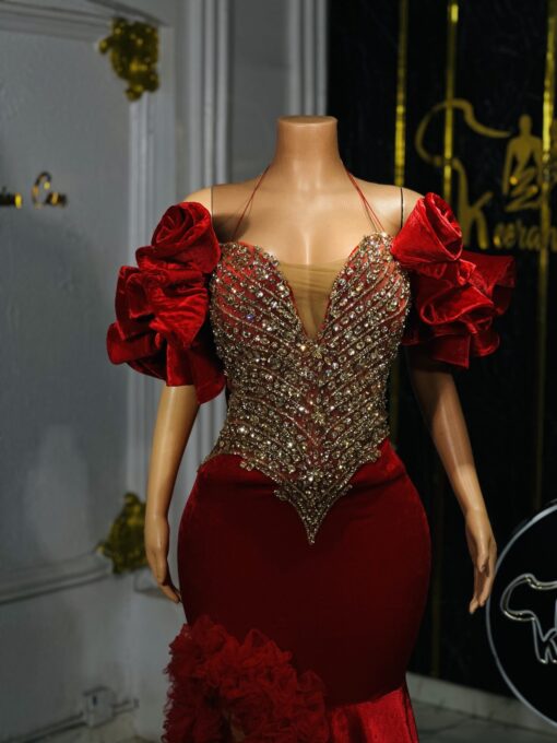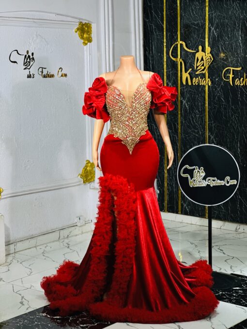 Experience the epitome of glamour and sophistication in this customizable prom dress. Contact us to discuss your color, fabric, and measurement preferences
