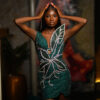 Ethereal Elegance: A luxurious short dress with structured sleeves. Make an unforgettable entrance in this breathtaking prom dress, customizable to your perfect fit .