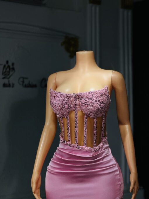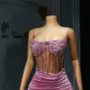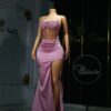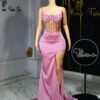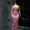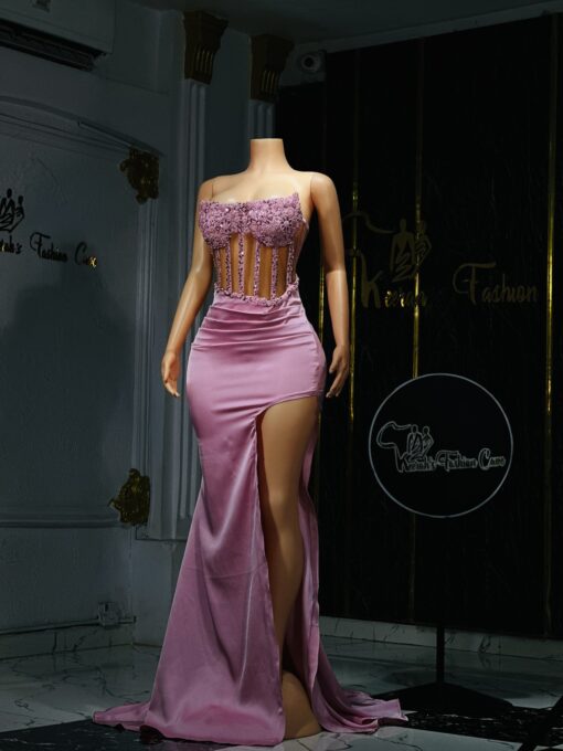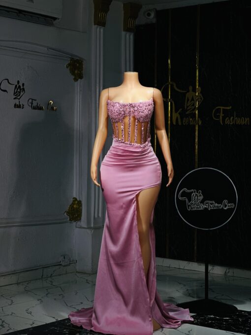 Ethereal Elegance: A luxurious baby pink dress with long slit. Make an unforgettable entrance in this breathtaking prom dress, customizable to your perfect fit .