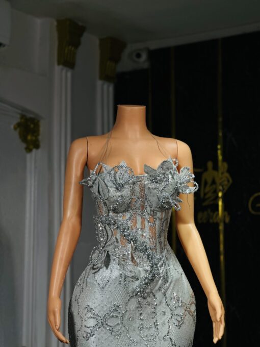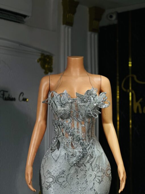 Experience the epitome of glamour and sophistication in this customizable prom dress. Contact us to discuss your color, fabric, and measurement preferences