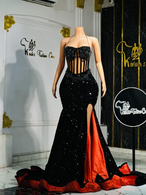 Experience the epitome of glamour and sophistication in this customizable prom dress. Contact us to discuss your color, fabric, and measurement preferences