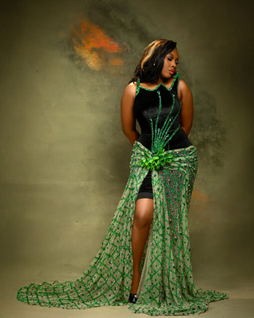Experience the epitome of glamour and sophistication in this customizable prom dress. Contact us to discuss your color, fabric, and measurement preferences