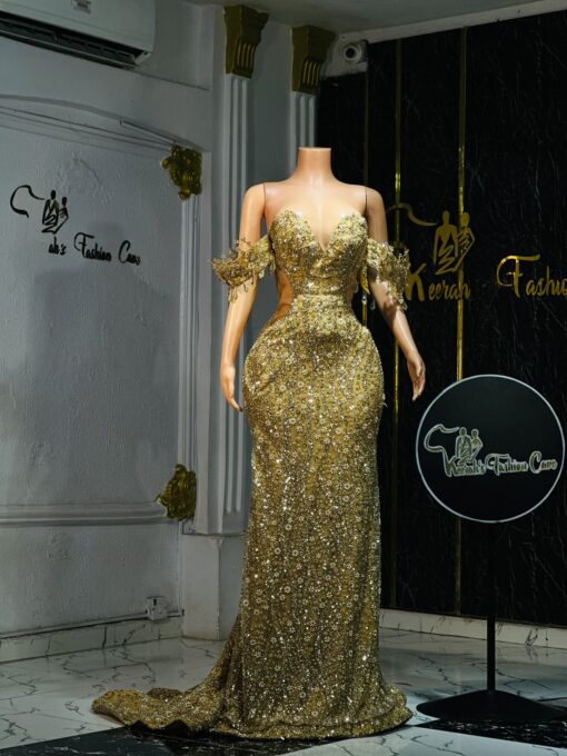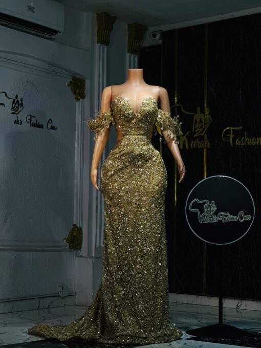 Experience the epitome of glamour and sophistication in this customizable prom dress. Contact us to discuss your color, fabric, and measurement preferences