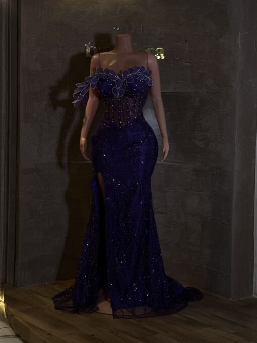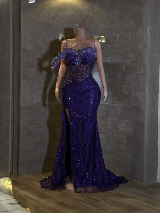 Experience the epitome of glamour and sophistication in this customizable prom dress. Contact us to discuss your color, fabric, and measurement preferences