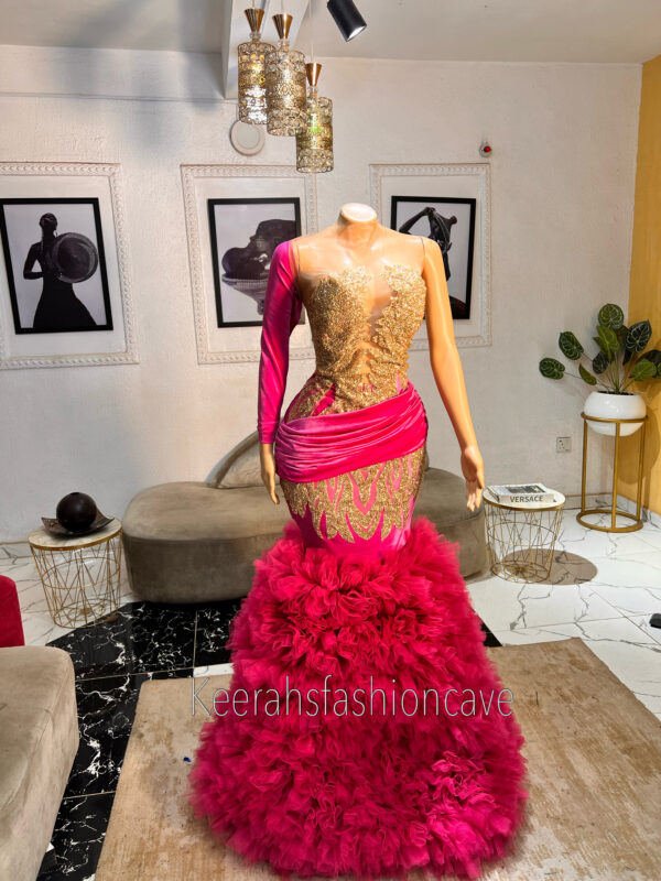 The dress is beautiful, the same as in the photo. I am very pleased with the purchase.