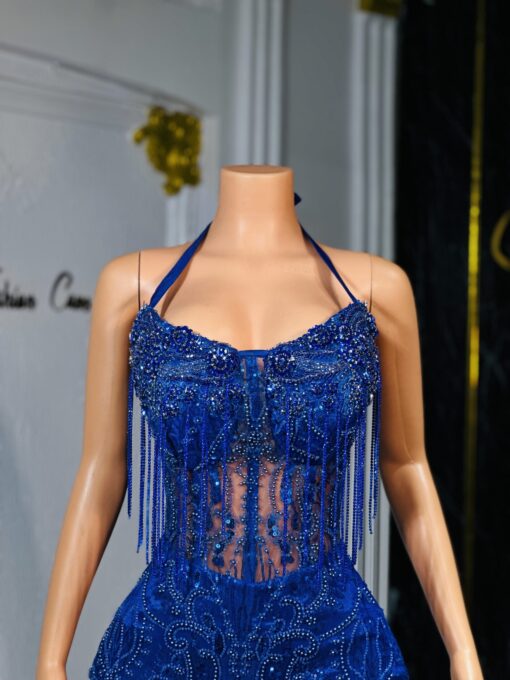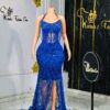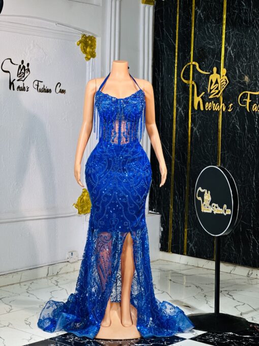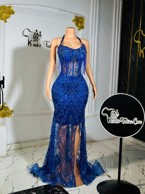 Ethereal Elegance: luxurious blue floor-lenght dress with slit. Make an unforgettable entrance in this breathtaking prom dress, customizable to your perfect fit .