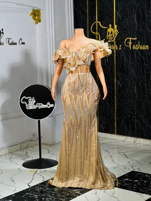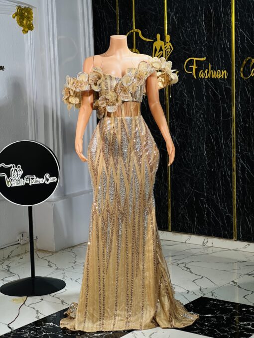 This stylish and elegant floor length lace dress with mind blowing 3d designs , can be customized to your size and taste.