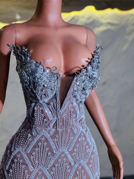 Experience the epitome of glamour and sophistication in this customizable prom dress. Contact us to discuss your color, fabric, and measurement preferences