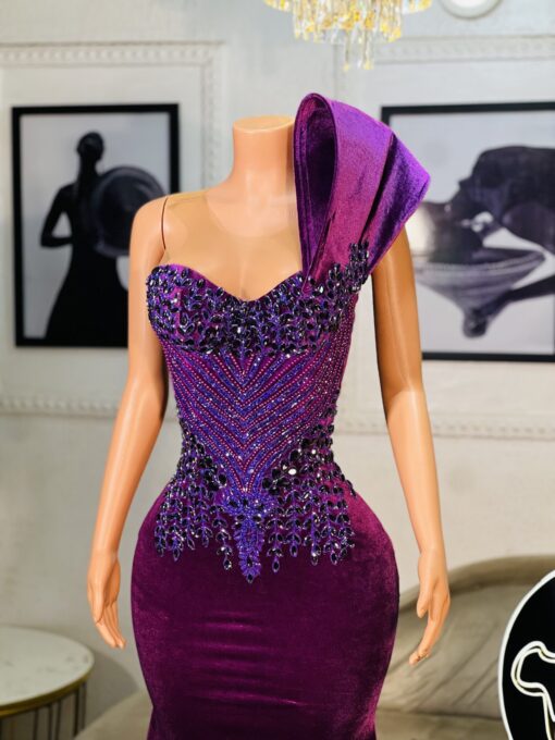 Ethereal Elegance: Customizable velvet dress embedded with lace. Make an unforgettable entrance in this breathtaking prom dress, customizable to your perfect fit .