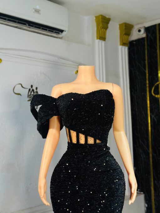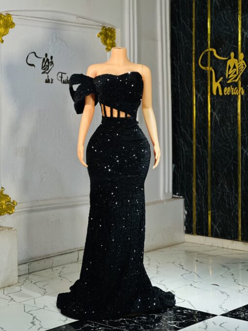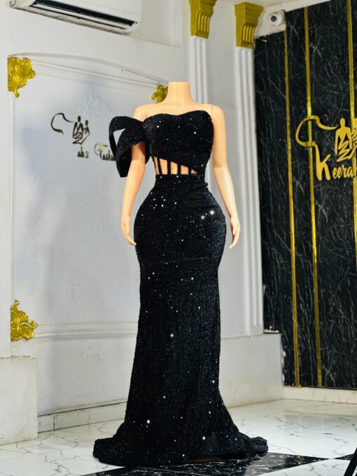 Ethereal Elegance: A sequin floor – length dress with elegant side cape . Make an unforgettable entrance in this breathtaking prom dress, customizable to your perfect fit .