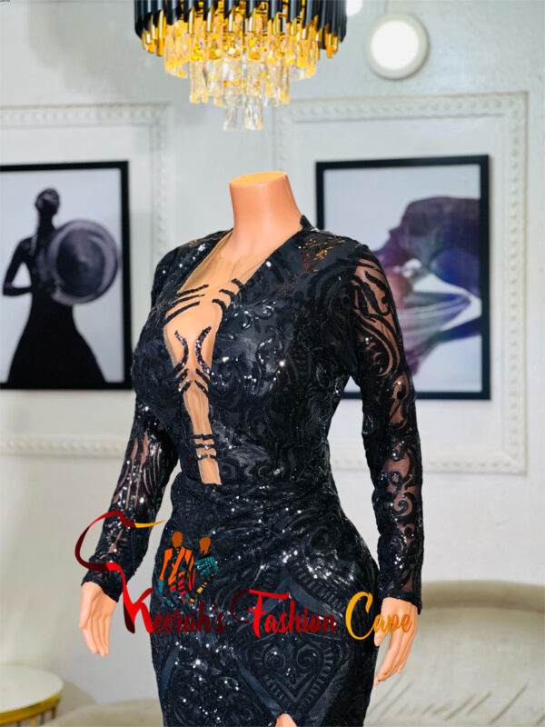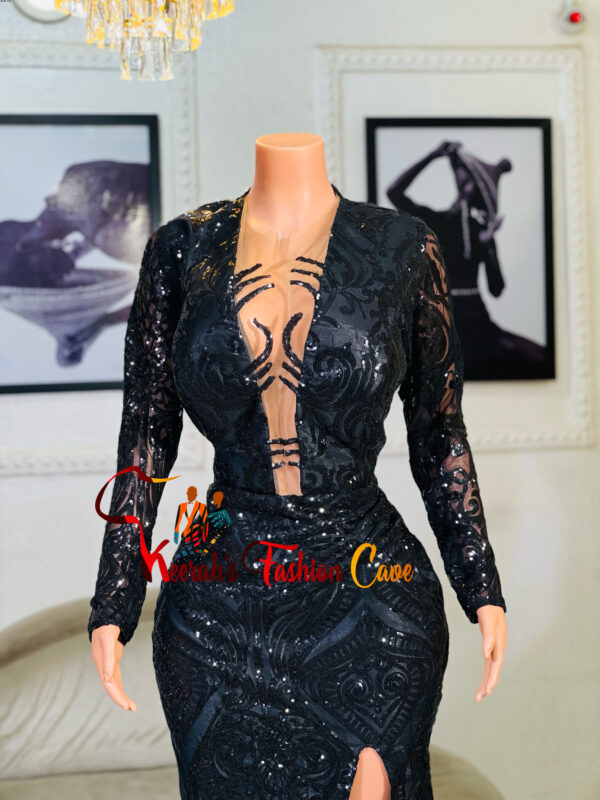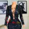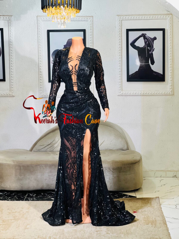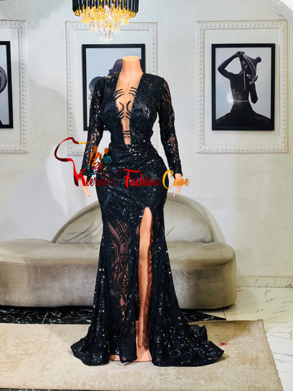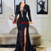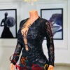 Ethereal Elegance: Customizable black lace prom dress with 3D design. Make an unforgettable entrance in this breathtaking prom dress, with above the knee side slit and intricate lace patterns customizable to your perfect fit .