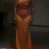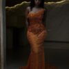 Ethereal Elegance: A luxurious Gold Dress with structured sleeves. Make an unforgettable entrance in this breathtaking prom dress, customizable to your perfect fit .