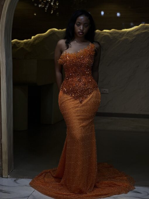 Experience the epitome of glamour and sophistication in this customizable prom dress. Contact us to discuss your color, fabric, and measurement preferences