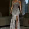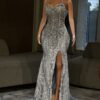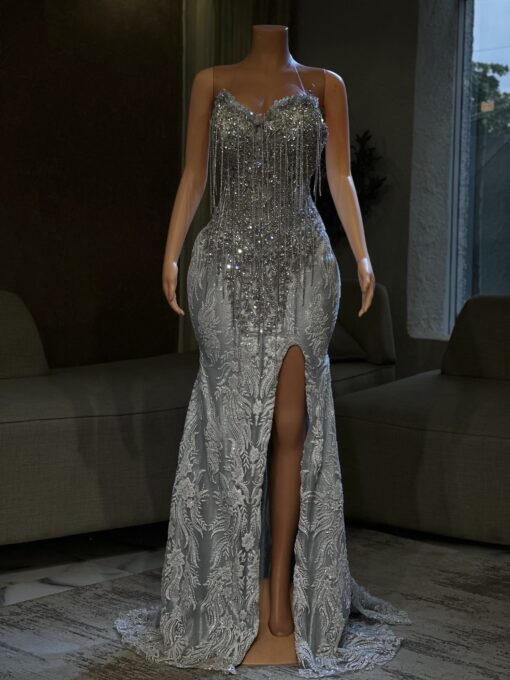 Experience the epitome of glamour and sophistication in this customizable prom dress. Contact us to discuss your color, fabric, and measurement preferences