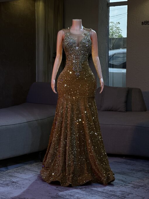 Experience the epitome of glamour and sophistication in this customizable prom dress. Contact us to discuss your color, fabric, and measurement preferences