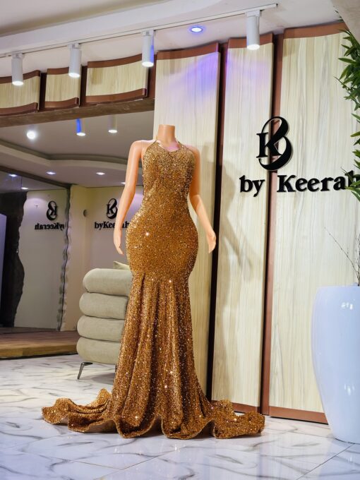 Experience the epitome of glamour and sophistication in this customizable prom dress. Contact us to discuss your color, fabric, and measurement preferences