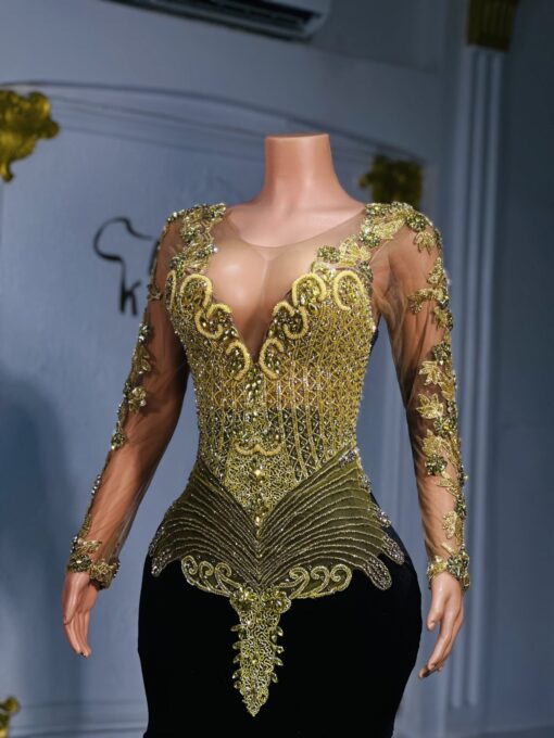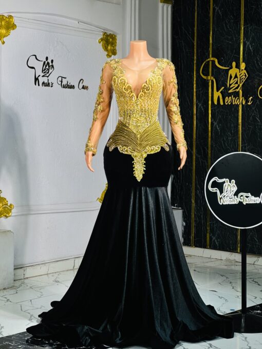 Experience the epitome of glamour and sophistication in this customizable prom dress. Contact us to discuss your color, fabric, and measurement preferences