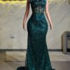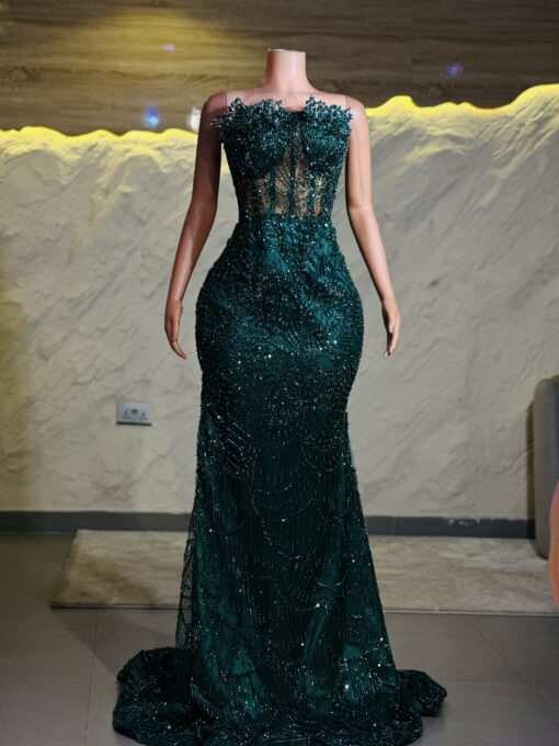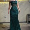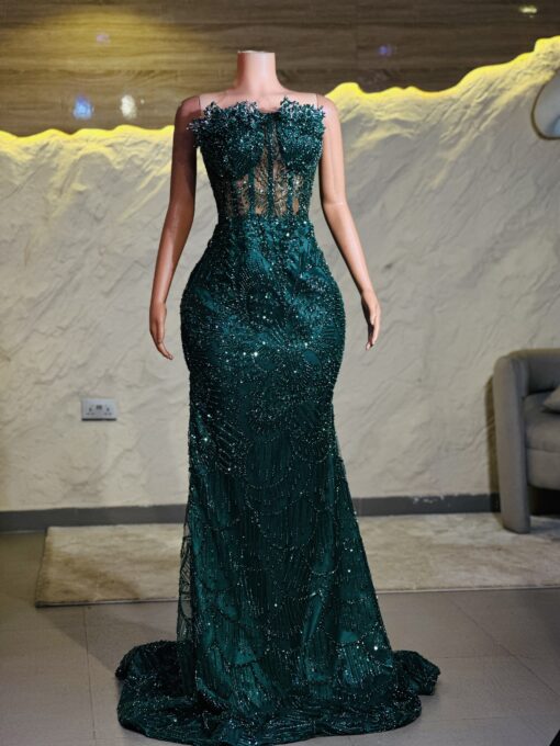 Ethereal Elegance: A luxurious green Dress with structured sleeves. Make an unforgettable entrance in this breathtaking prom dress, customizable to your perfect fit .