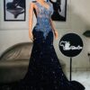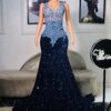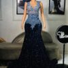 Experience the epitome of glamour and sophistication in this customizable floor-length beaded lace prom dress. Contact us to discuss your color, fabric, and measurement preferences