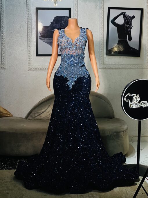 Ethereal Elegance: Customizable sequin dress embedded with lace. Make an unforgettable entrance in this breathtaking prom dress, customizable to your perfect fit .