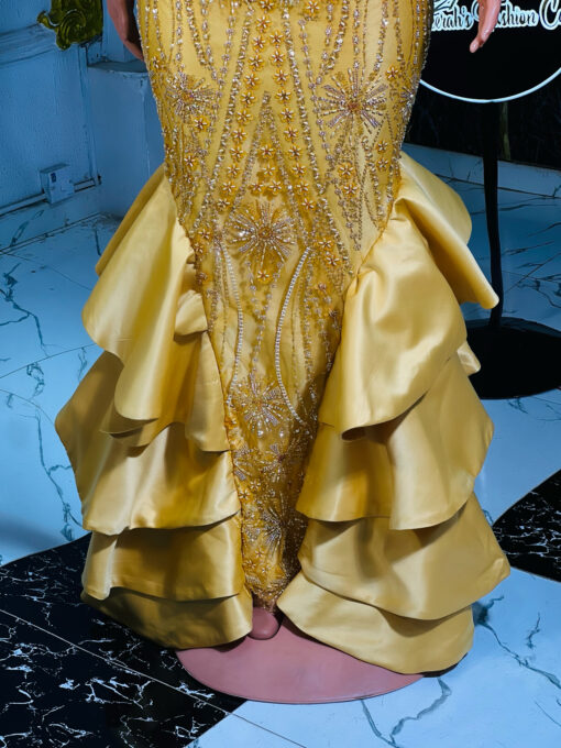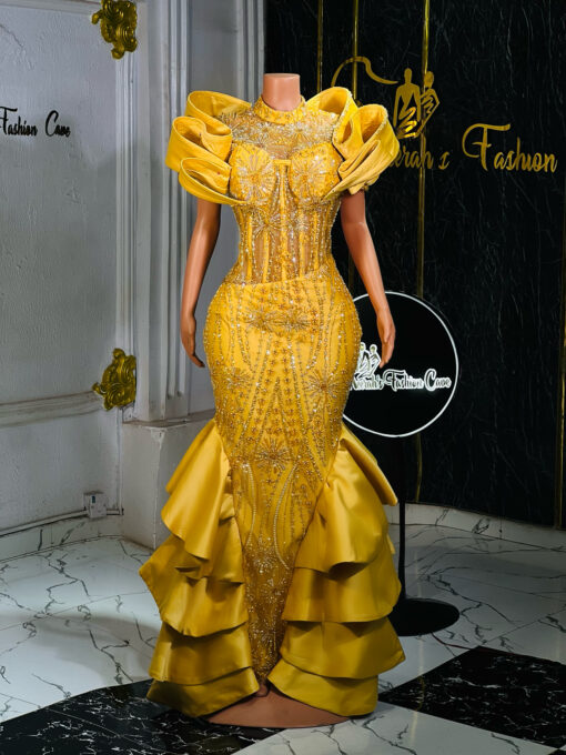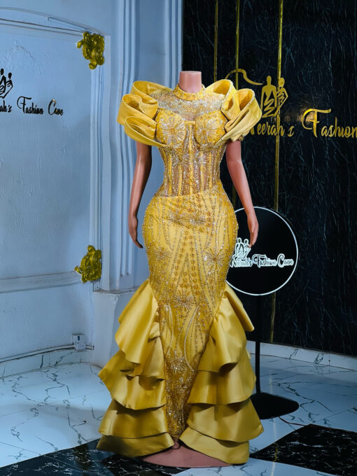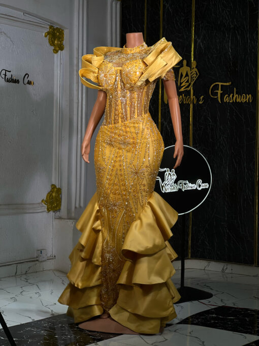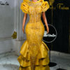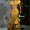 Make a stunning statement with our exquisite lace gown. This show-stopping design combines bold cultural flair with sophisticated elegance.