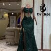 Ethereal Elegance: A luxurious floor length lace dress with slit. Make an unforgettable entrance in this breathtaking prom dress, customizable to your perfect fit .