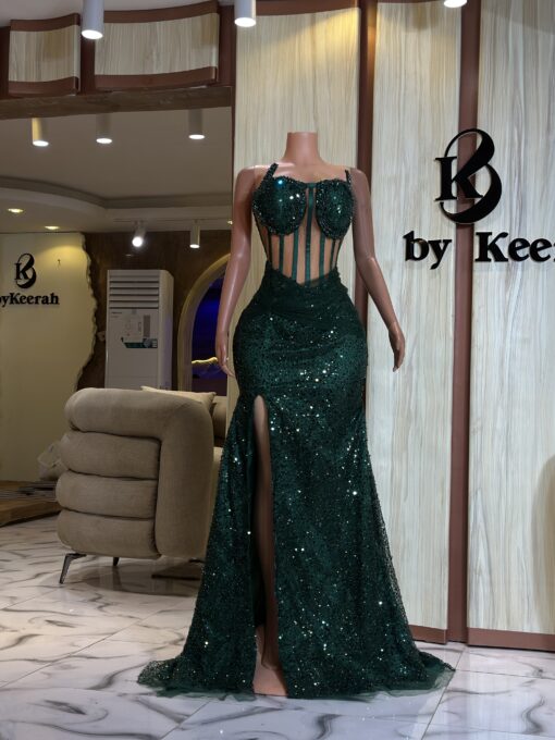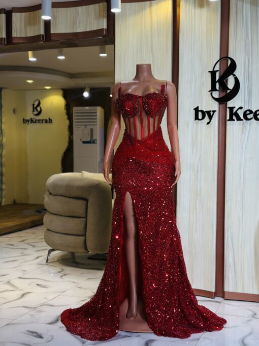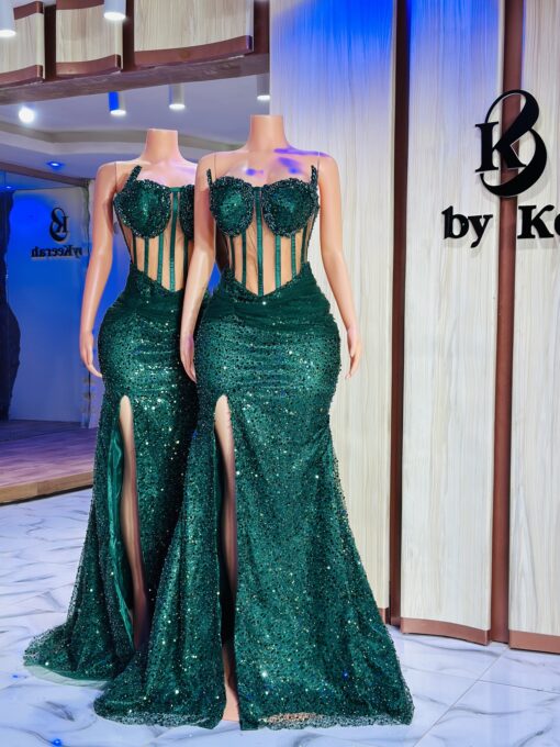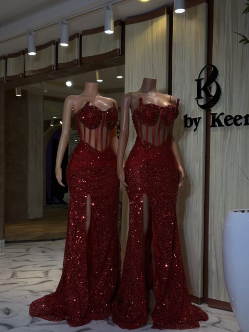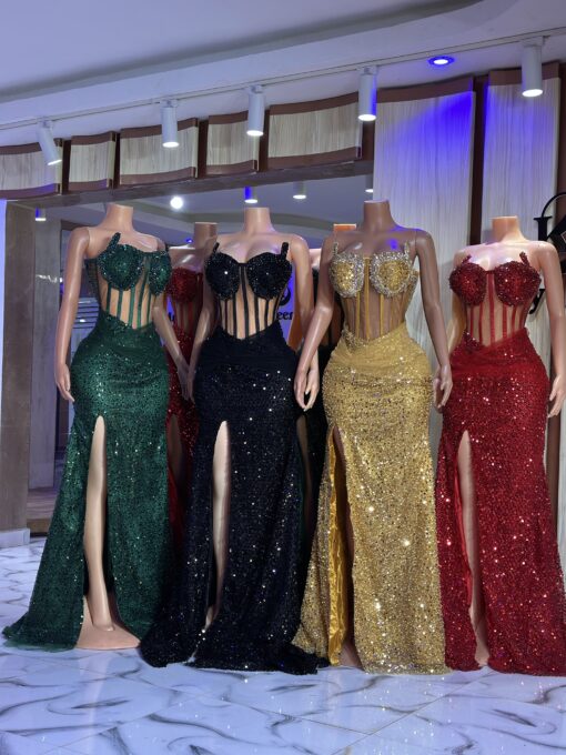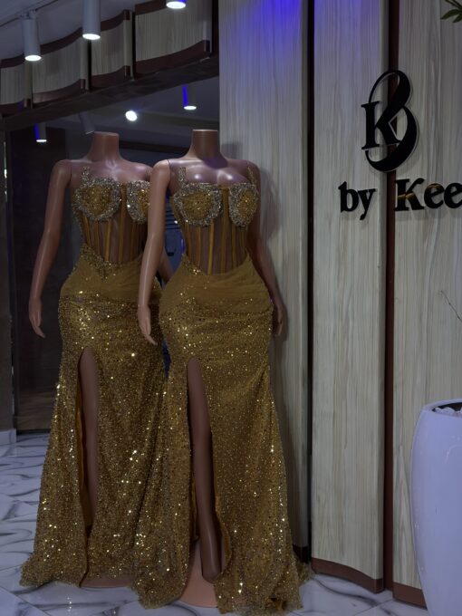 Experience the epitome of glamour and sophistication in this customizable prom dress. Contact us to discuss your color, fabric, and measurement preferences