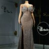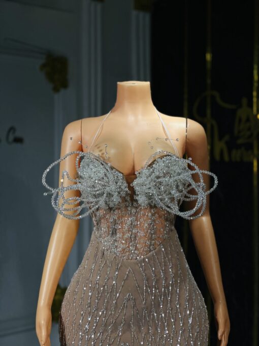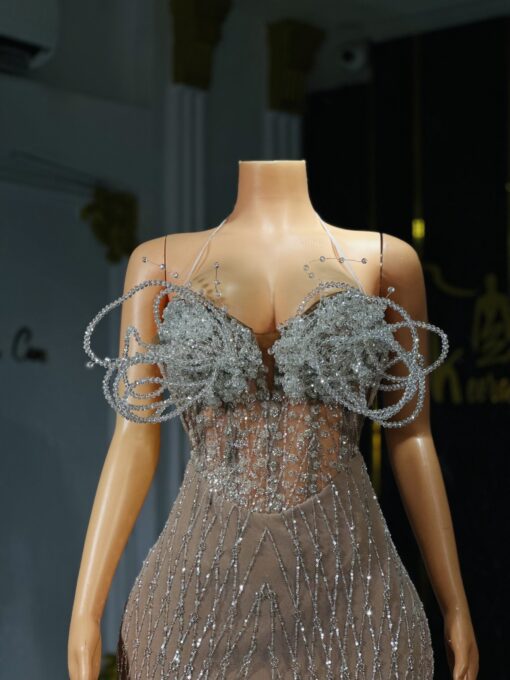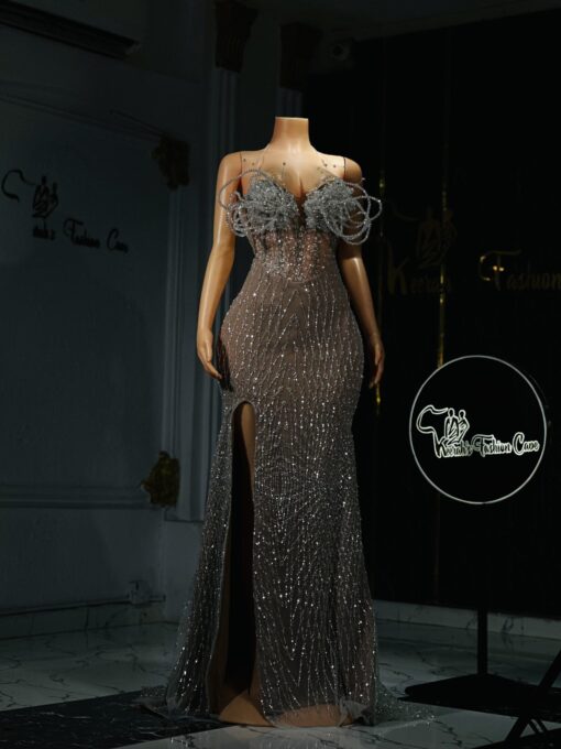 Experience the epitome of glamour and sophistication in this customizable prom dress. Contact us to discuss your color, fabric, and measurement preferences