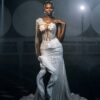 Ethereal Elegance: Customizable white prom dress with side slit. Make an unforgettable entrance in this breathtaking prom dress, customizable to your perfect fit .